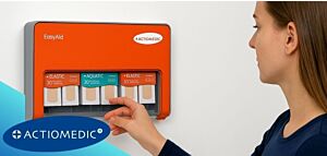 Plastry elastyczne Actiomedic idealnie nadają się do uzupełnienia dozownika plastrów Easy Aid. Plastry są hipoalergiczne i przepuszczają powietrze.